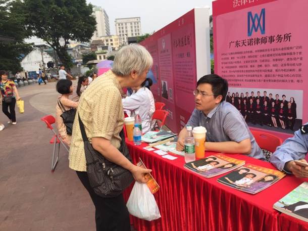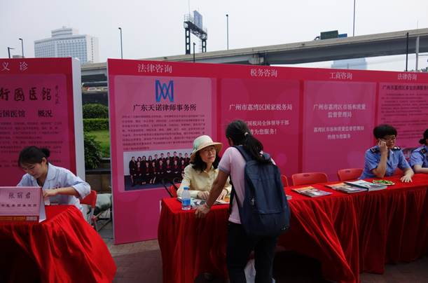 2017年5月10日,由广州市荔湾区女企业家协会主办的“智扶百千万”慈善公益大活动在广州西城都荟南广场举行。广东天诺律师事务所作为活动支持单位,派出数名律师积极参加本次“母亲节”前夕的慈善公益活动,为荔湾区内贫困单亲母亲和女性义务提供就业指导、法律咨询服务等关怀。